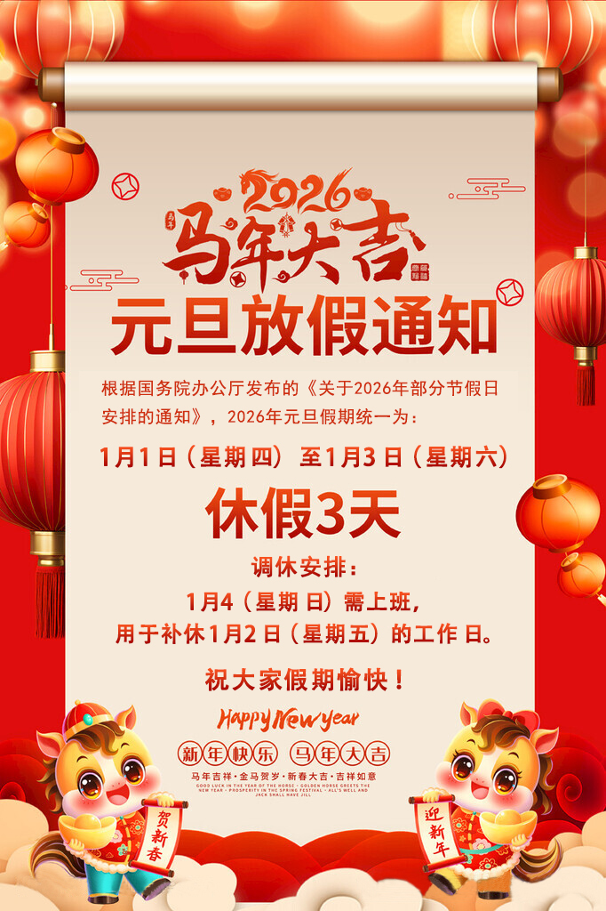 2026元旦放假通知